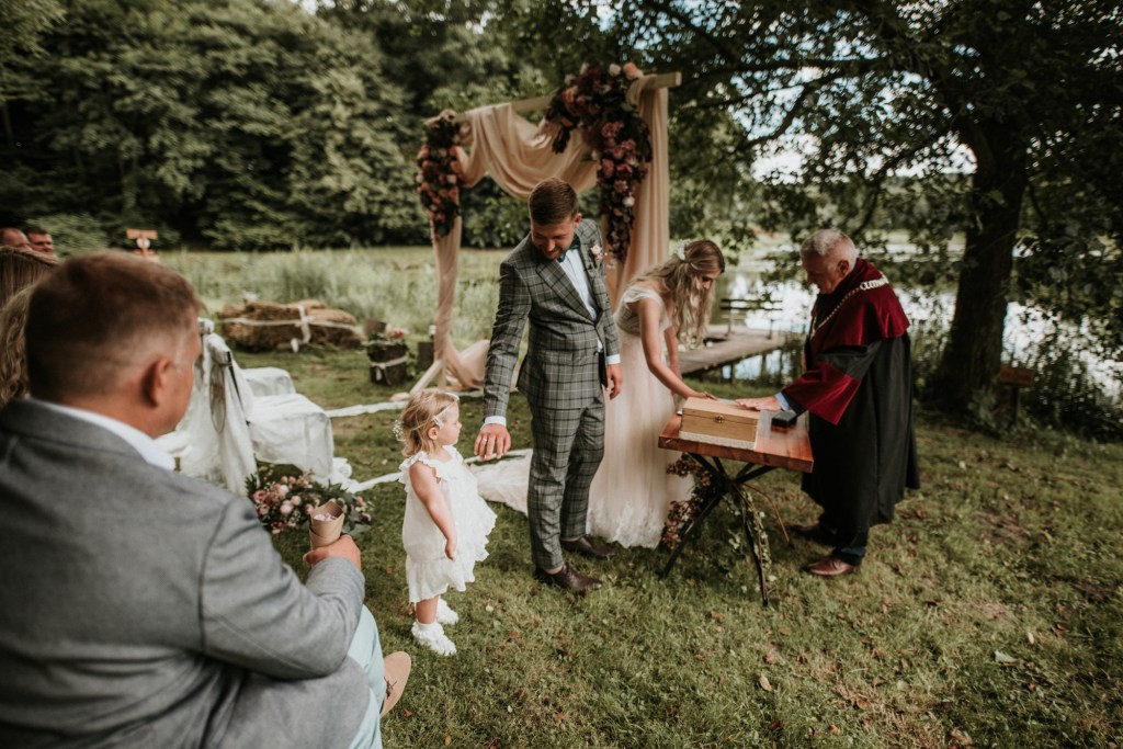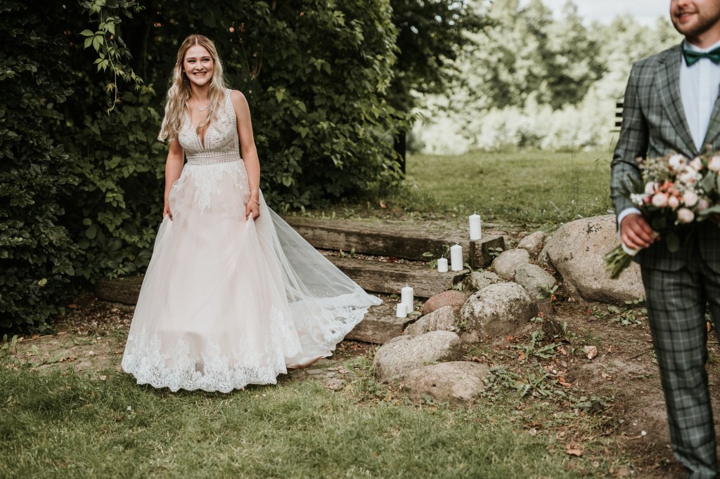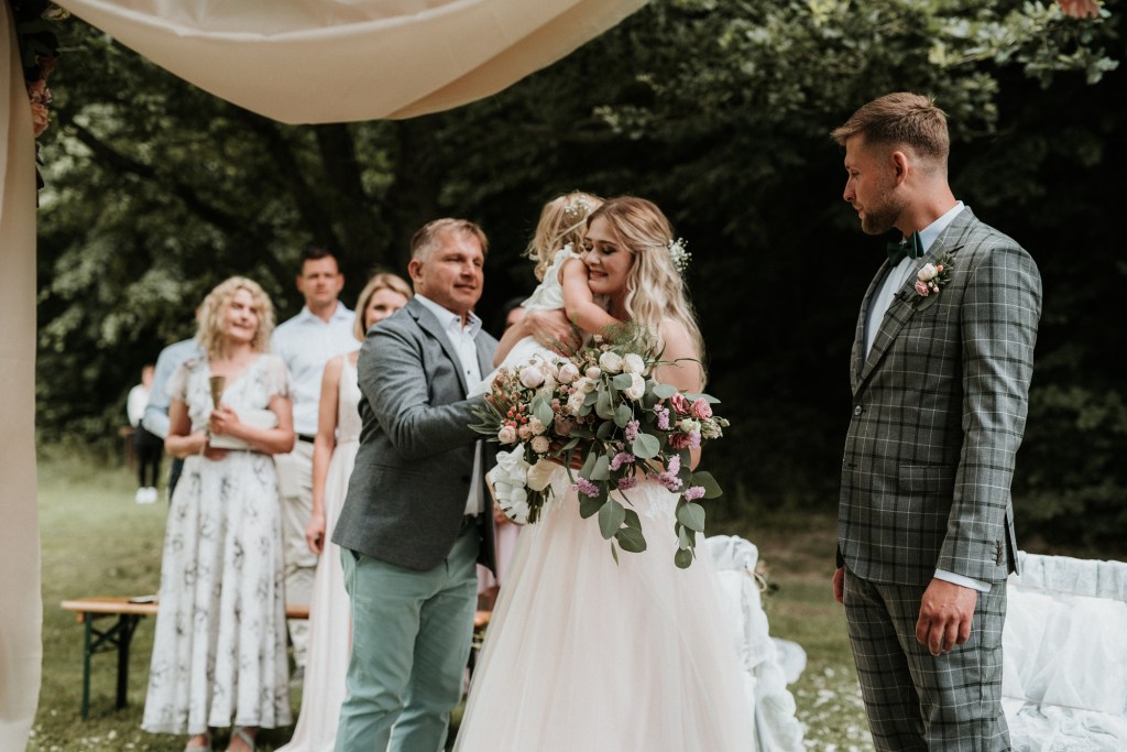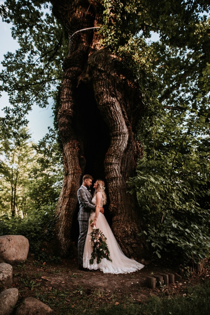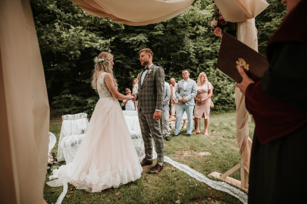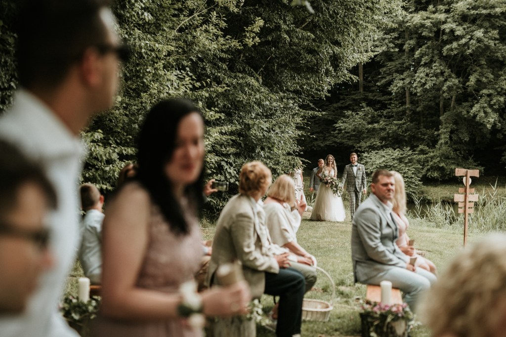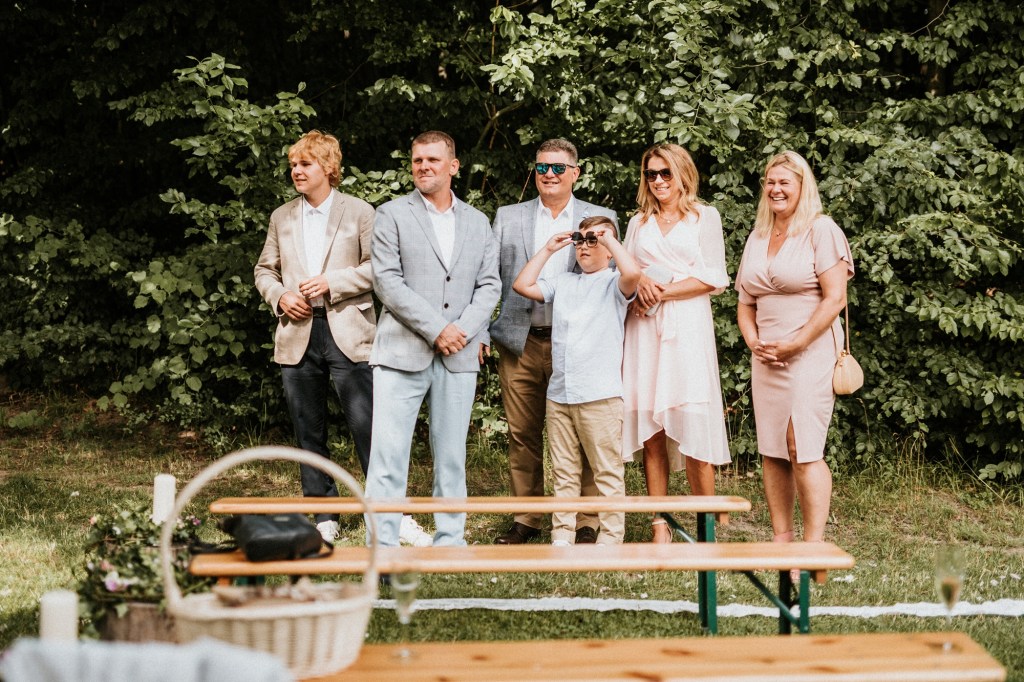 To była piękna ceremonia ślubna w Klekotkach. Trudne czasy pobudzają kreatywność i zamiast typowego, wcześniej planowanego wesela z dużym gronem znajomych i przyjaciół, była mała ceremonia nad jeziorem i przyjęcie w lesie, z tańcami i aperolem. Najpiękniejsze kwietne dekoracje przygotowały Babcia i Mama Oliwii. Był to dla mnie niezapomniany czas z cudownymi ludźmi, jestem szczęśliwa, że to właśnie ja, miałam szczęście uwiecznić ten bajkowy, elficki, leśny ślub.