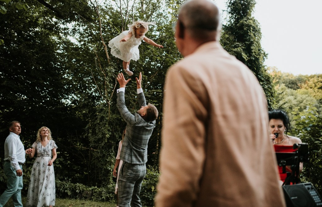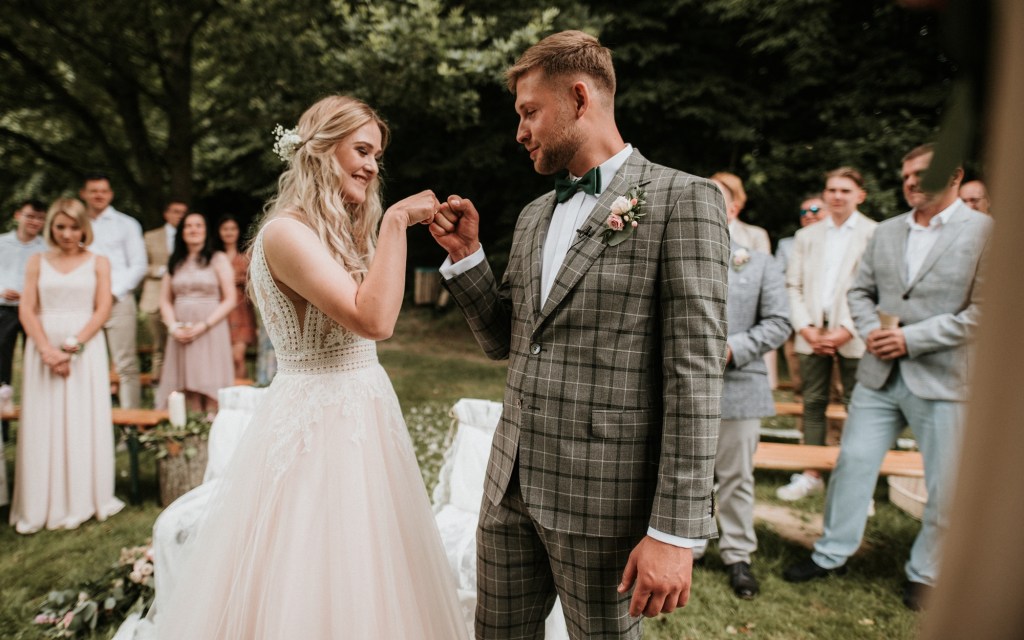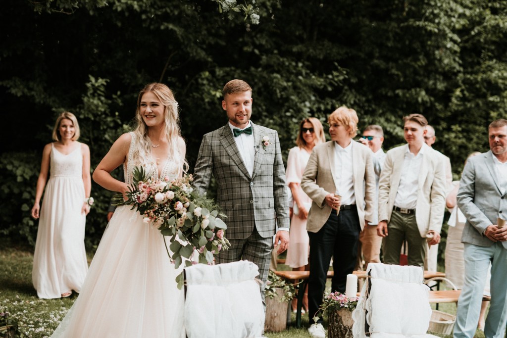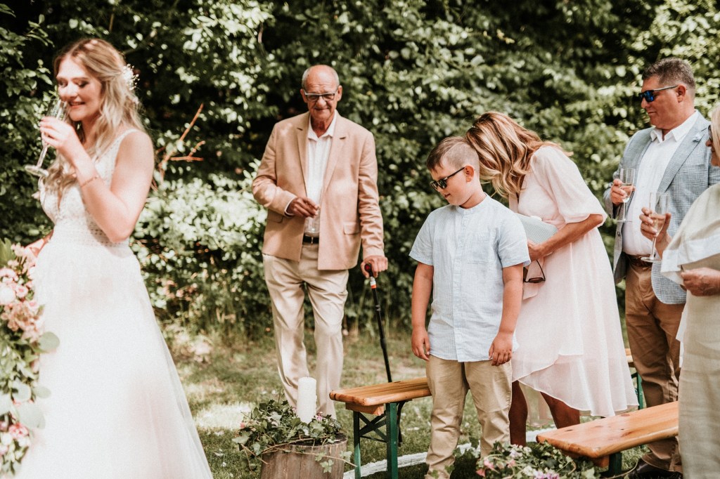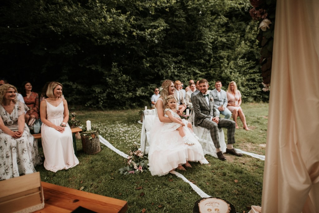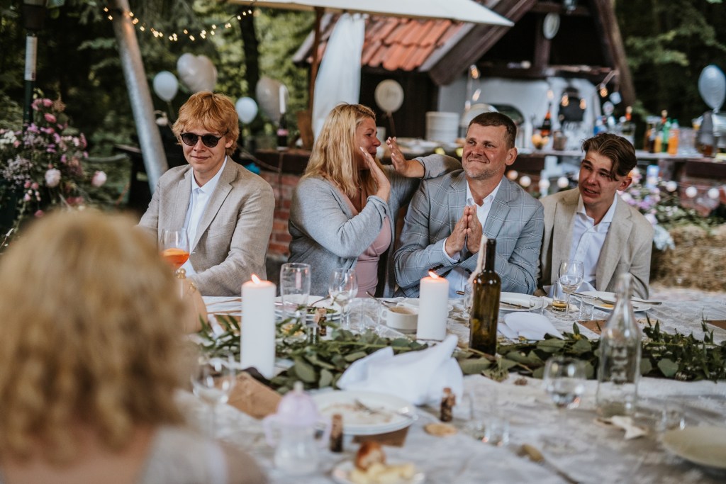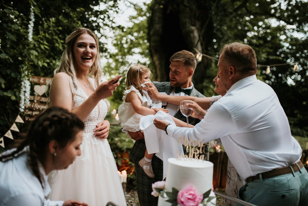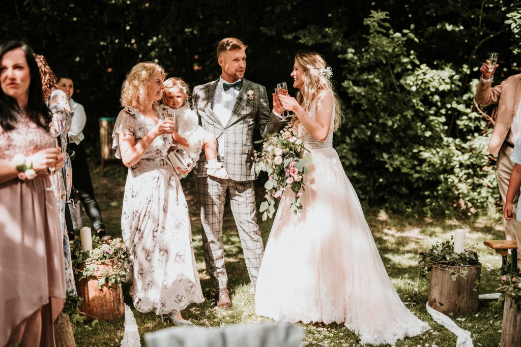 To była piękna ceremonia ślubna w Klekotkach. Trudne czasy pobudzają kreatywność i zamiast typowego, wcześniej planowanego wesela z dużym gronem znajomych i przyjaciół, była mała ceremonia nad jeziorem i przyjęcie w lesie, z tańcami i aperolem. Najpiękniejsze kwietne dekoracje przygotowały Babcia i Mama Oliwii. Był to dla mnie niezapomniany czas z cudownymi ludźmi, jestem szczęśliwa, że to właśnie ja, miałam szczęście uwiecznić ten bajkowy, elficki, leśny ślub.
