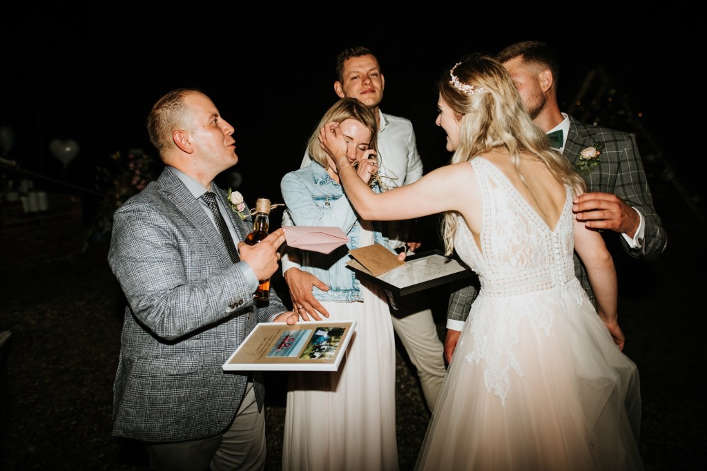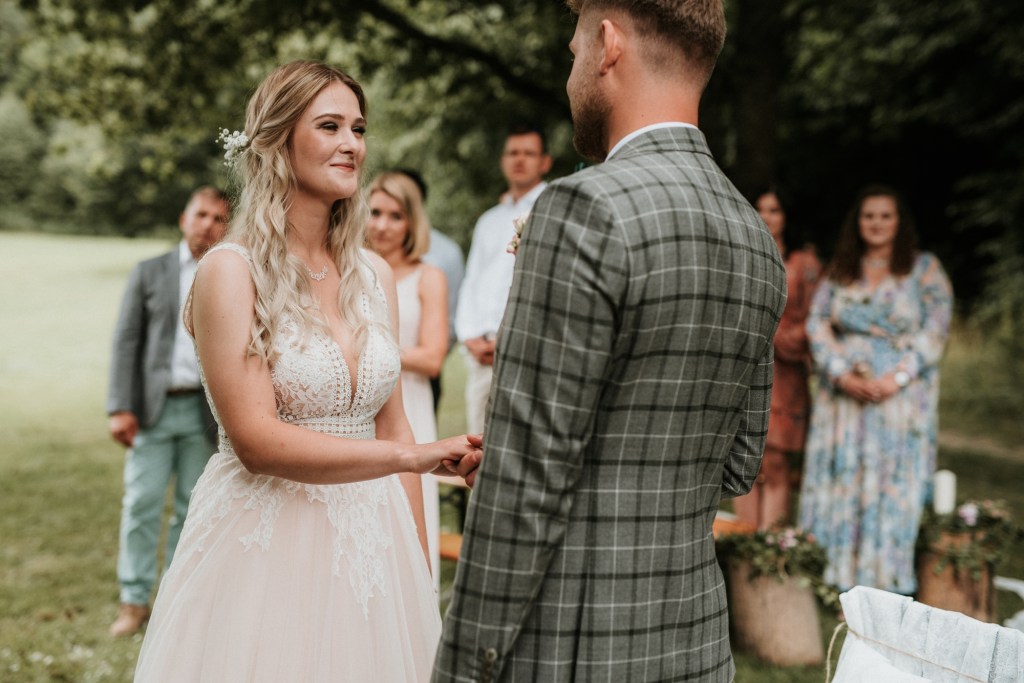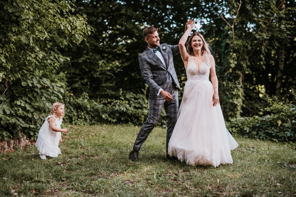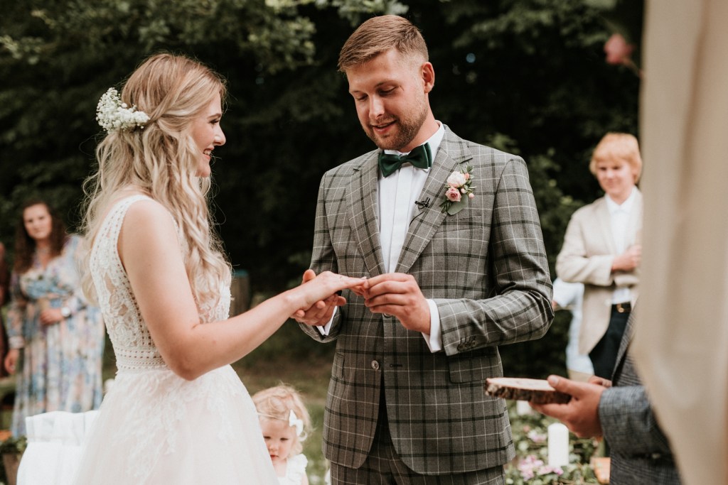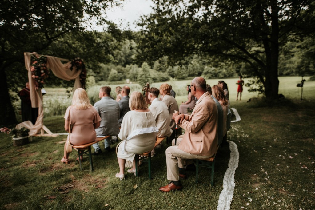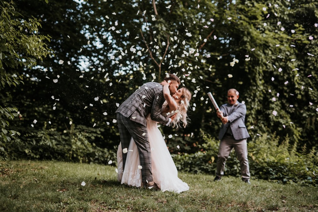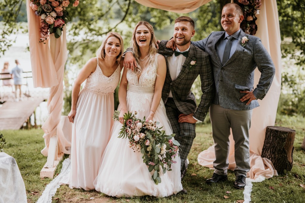 To była piękna ceremonia ślubna w Klekotkach. Trudne czasy pobudzają kreatywność i zamiast typowego, wcześniej planowanego wesela z dużym gronem znajomych i przyjaciół, była mała ceremonia nad jeziorem i przyjęcie w lesie, z tańcami i aperolem. Najpiękniejsze kwietne dekoracje przygotowały Babcia i Mama Oliwii. Był to dla mnie niezapomniany czas z cudownymi ludźmi, jestem szczęśliwa, że to właśnie ja, miałam szczęście uwiecznić ten bajkowy, elficki, leśny ślub.