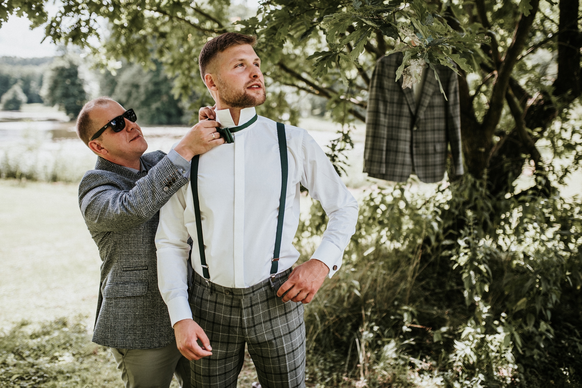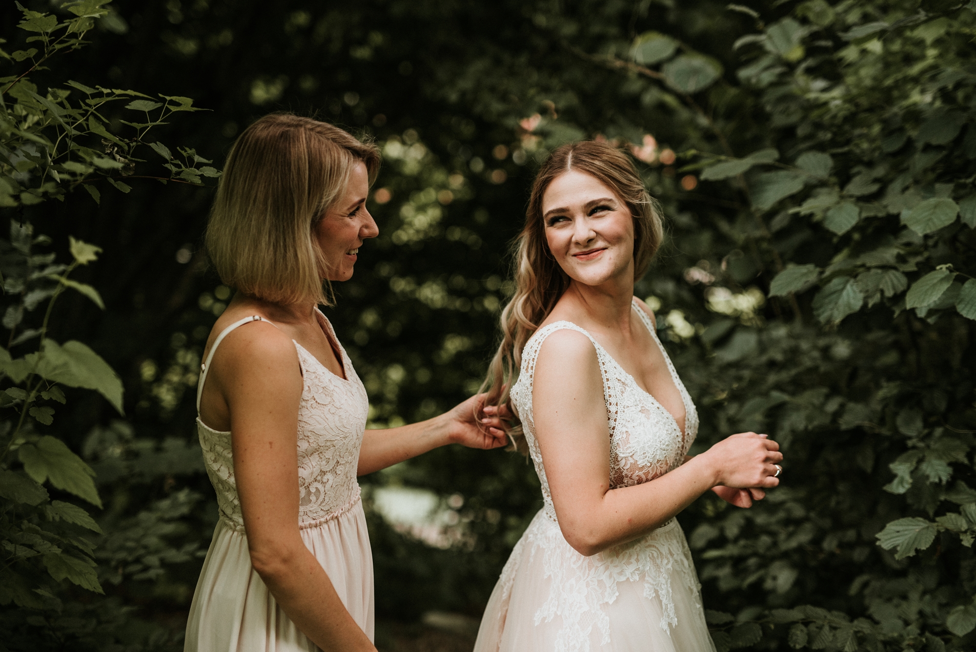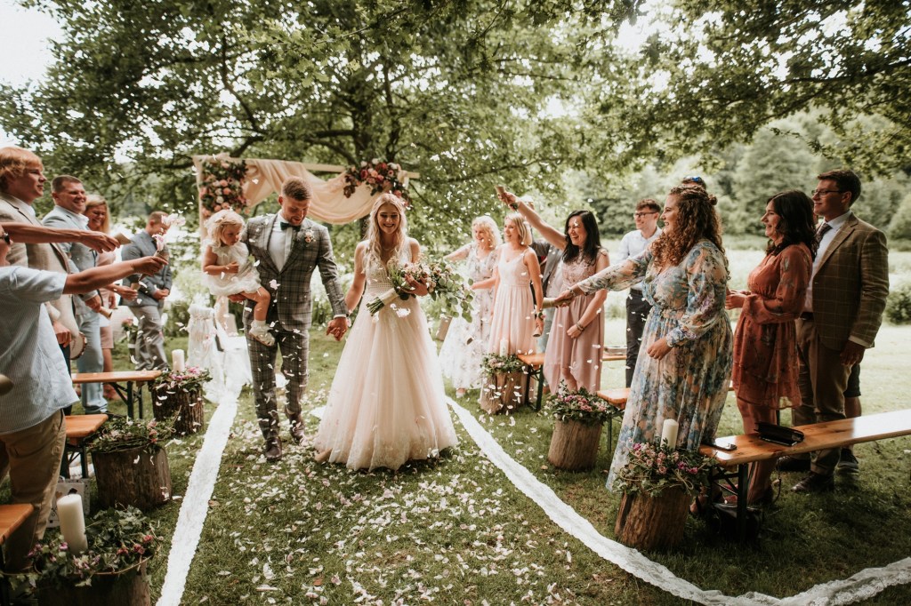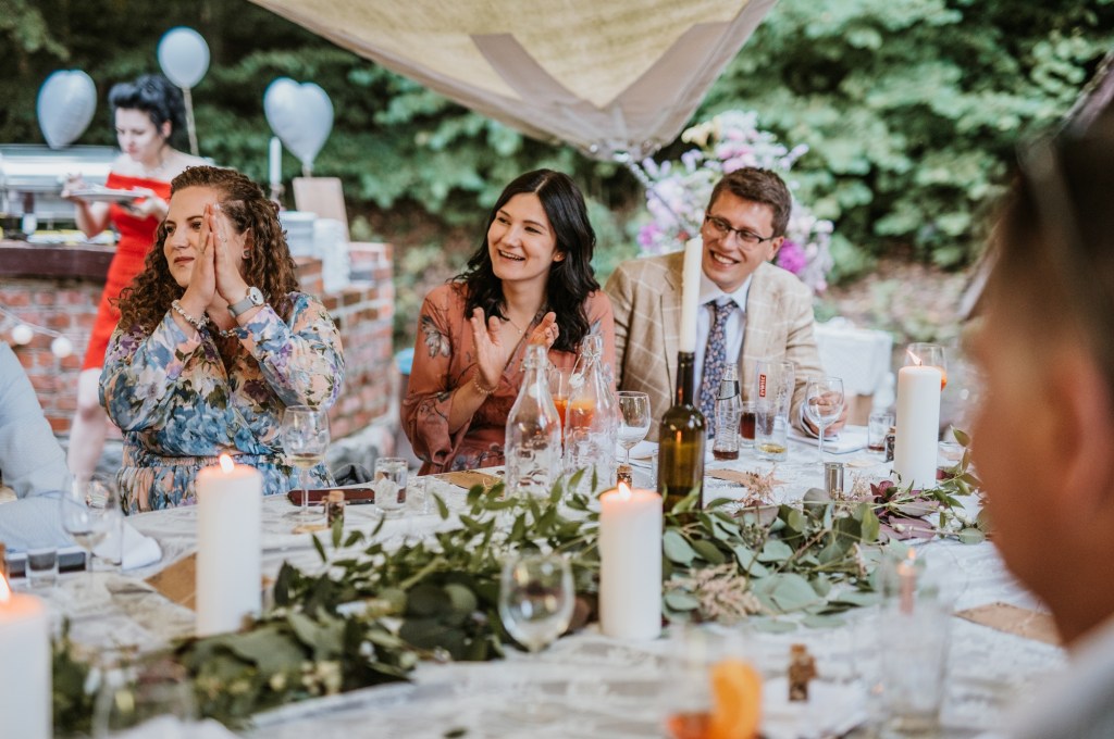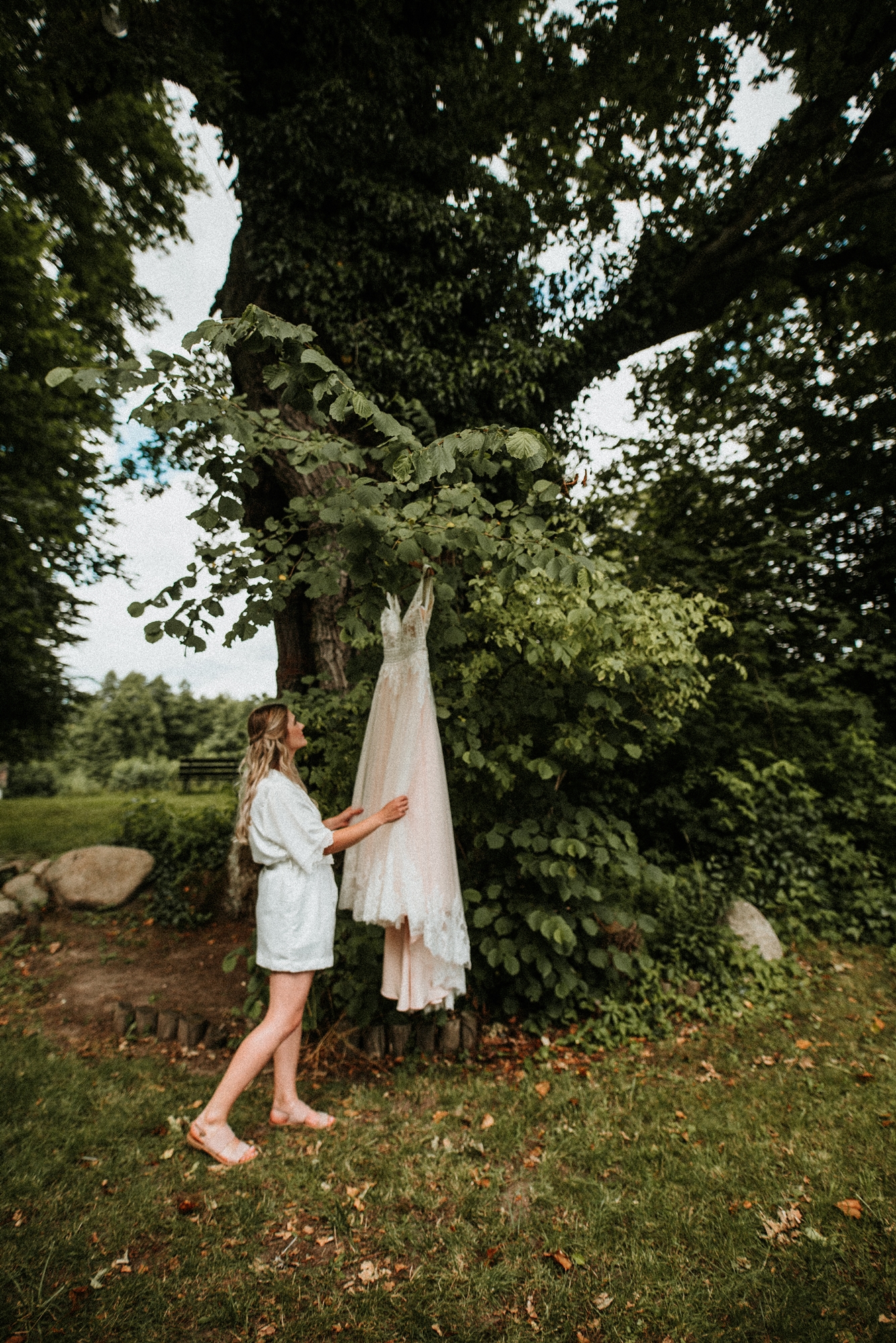 To była piękna ceremonia ślubna w Klekotkach. Trudne czasy pobudzają kreatywność i zamiast typowego, wcześniej planowanego wesela z dużym gronem znajomych i przyjaciół, była mała ceremonia nad jeziorem i przyjęcie w lesie, z tańcami i aperolem. Najpiękniejsze kwietne dekoracje przygotowały Babcia i Mama Oliwii. Był to dla mnie niezapomniany czas z cudownymi ludźmi, jestem szczęśliwa, że to właśnie ja, miałam szczęście uwiecznić ten bajkowy, elficki, leśny ślub.